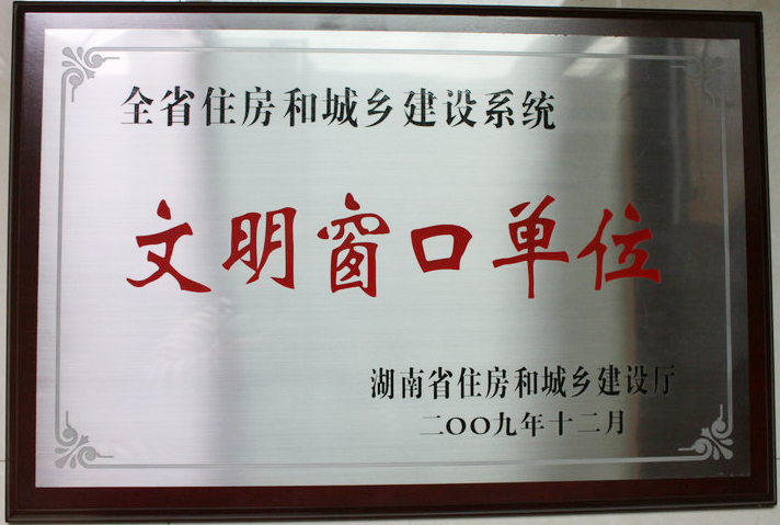 • 2009年12月被湖南省住房和城鄉(xiāng)建設(shè)廳評(píng)為“全省住房和城鄉(xiāng)建設(shè)系統(tǒng)文明窗口單位”